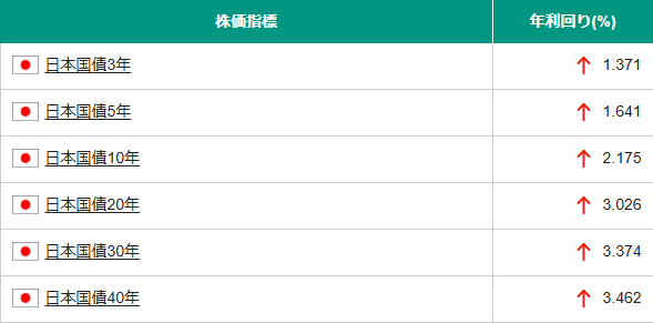 本日現在の日本国債の30年ものは利回り3%を超えている。